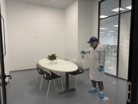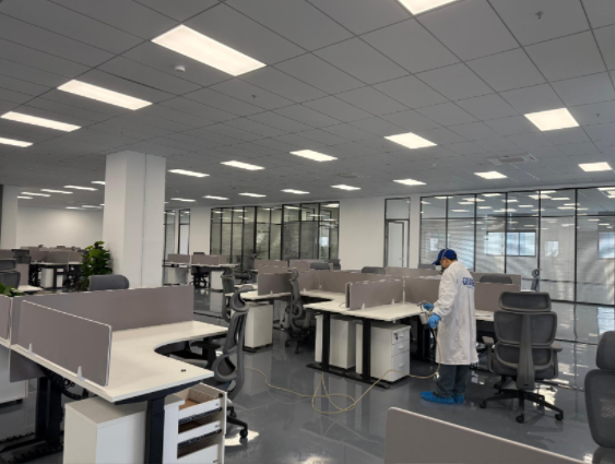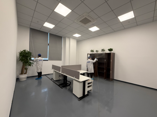 杭州紐鼐機(jī)器人有限公司深耕通用設(shè)備制造與機(jī)器人研發(fā)領(lǐng)域,其 1600㎡辦公空間坐落于杭州蕭山區(qū)經(jīng)濟(jì)技術(shù)開發(fā)區(qū),涵蓋開放式研發(fā)區(qū)、獨立辦公室、會議室、設(shè)備陳列區(qū)、員工休息區(qū)等多個功能區(qū)域。因辦公空間新裝修完成,全屋采用大量辦公定制柜體、隔斷板材、墻面涂料、地毯軟裝,加之設(shè)備陳列區(qū)柜體密集、部分研發(fā)區(qū)域通風(fēng)條件有限,形成了甲醛、TVOC 等多元有害氣體污染源;同時作為科創(chuàng)研發(fā)企業(yè),辦公區(qū)各類精密儀器、研發(fā)設(shè)備密集,對除醛治理的安全性、無腐蝕性、高效性提出嚴(yán)苛要求,既要實現(xiàn)深層除醛,又要確保治理過程不損傷精密設(shè)備,保障企業(yè)后續(xù)研發(fā)工作順利開展。企業(yè)在參考杭州除甲醛品牌排名、對比多家杭州除甲醛公司后,認(rèn)準(zhǔn)創(chuàng)綠家的工裝治理經(jīng)驗與科創(chuàng)空間服務(wù)案例,最終選定創(chuàng)綠家為本次 1600㎡辦公空間的專屬除醛服務(wù)商。