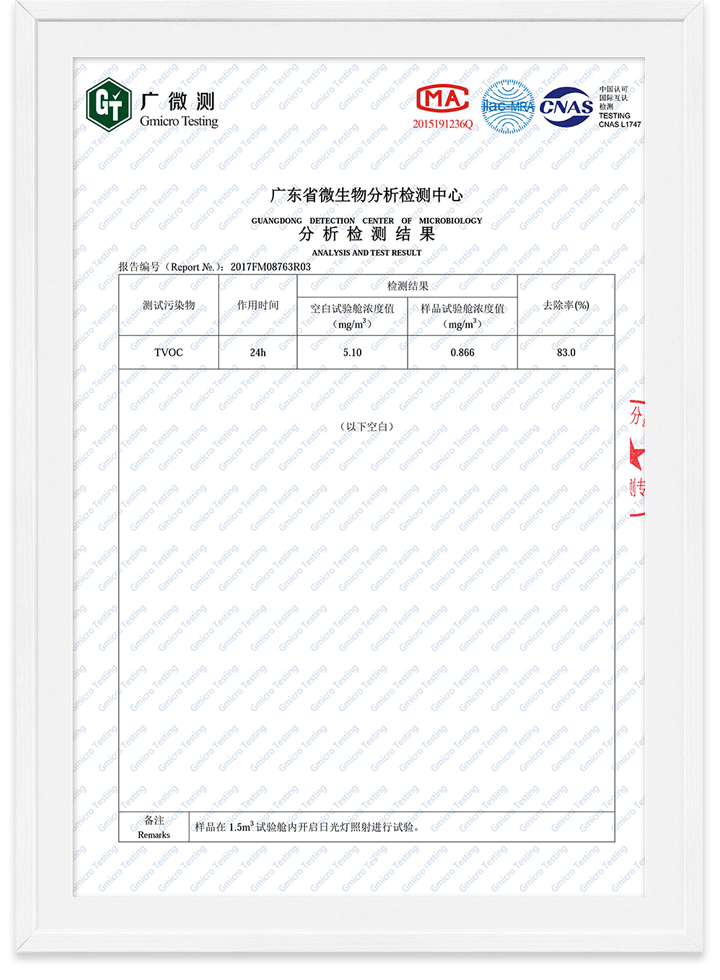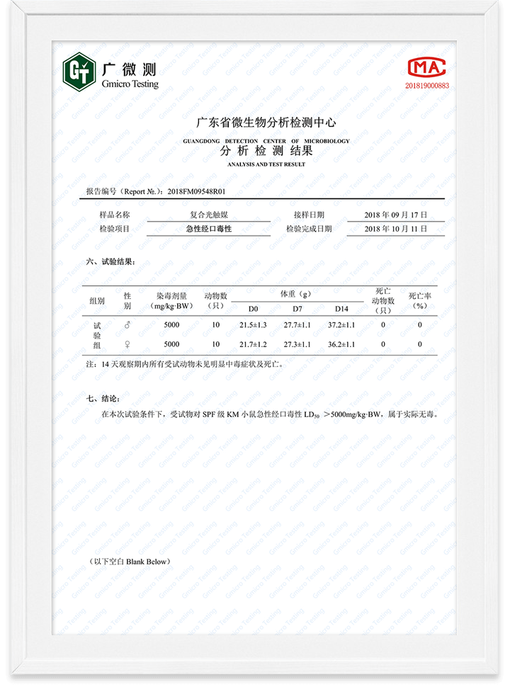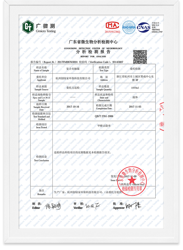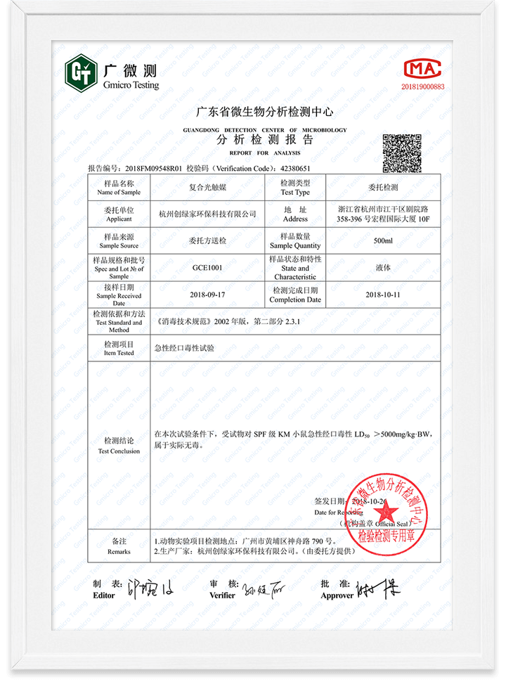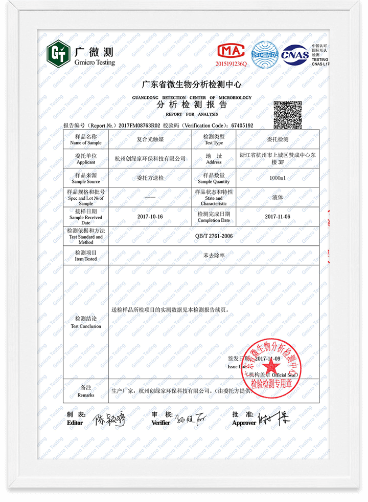 光觸媒無(wú)毒檢測(cè)報(bào)告