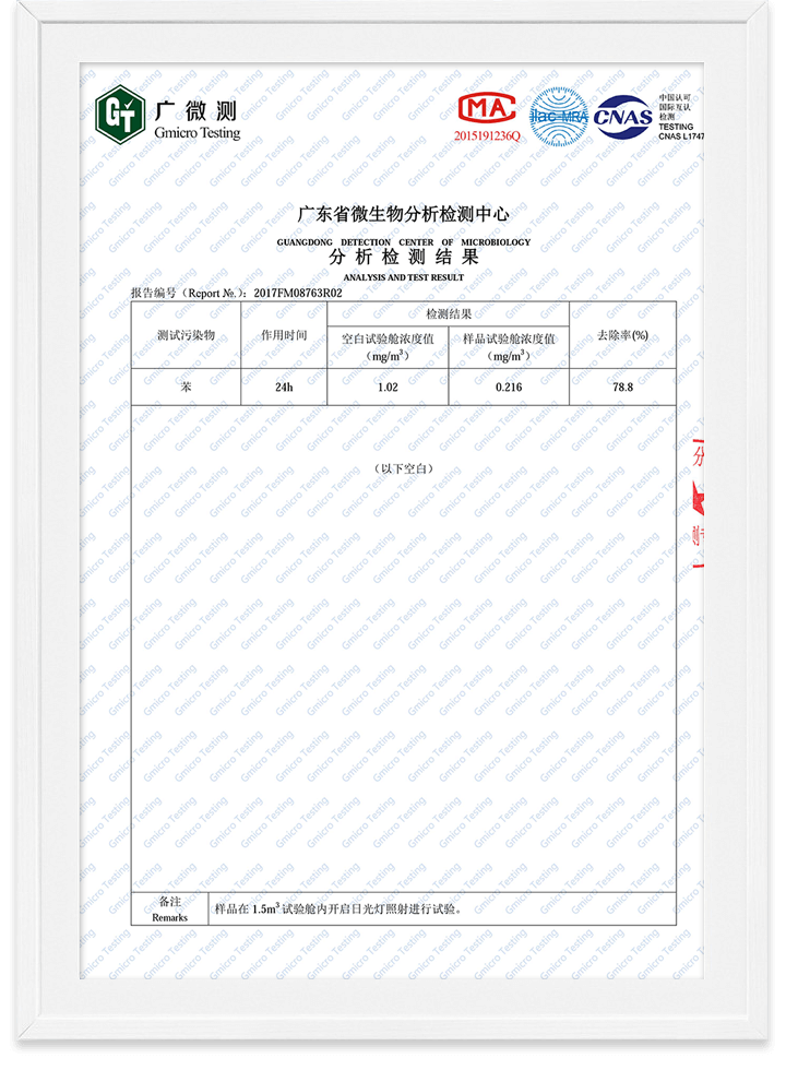 除醛精靈苯去除率檢測(cè)報(bào)告