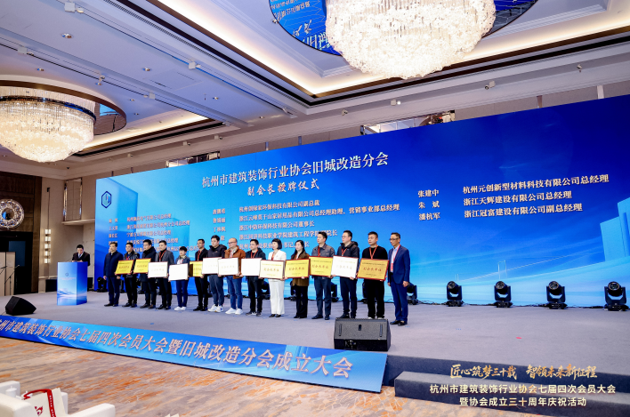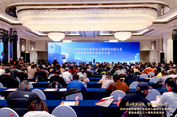 2026年1月21日,杭州市建筑裝飾行業協會七屆四次會員大會暨舊城改造分會成立大會在杭州黃龍飯店隆重召開。本次大會以“匠心筑夢三十載 智領未來新征程”為核心主題,匯聚了行業主管部門領導、協會負責人、會員單位代表及行業專家學者,共商杭州建筑裝飾行業高質量發展大計,見證舊城改造領域開啟全新發展篇章。